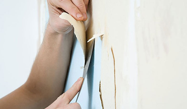 4. کندن کاغذ دیواری با کاردک برای کاغذ دیواریهای مقاوم به آب